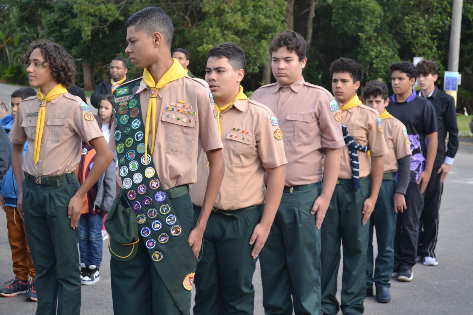 Os Desbravadores do Vale do Sol trouxeram doações e realizaram uma apresentação junto a uma dinâmica sobre o grupo e seu estilo de vida.